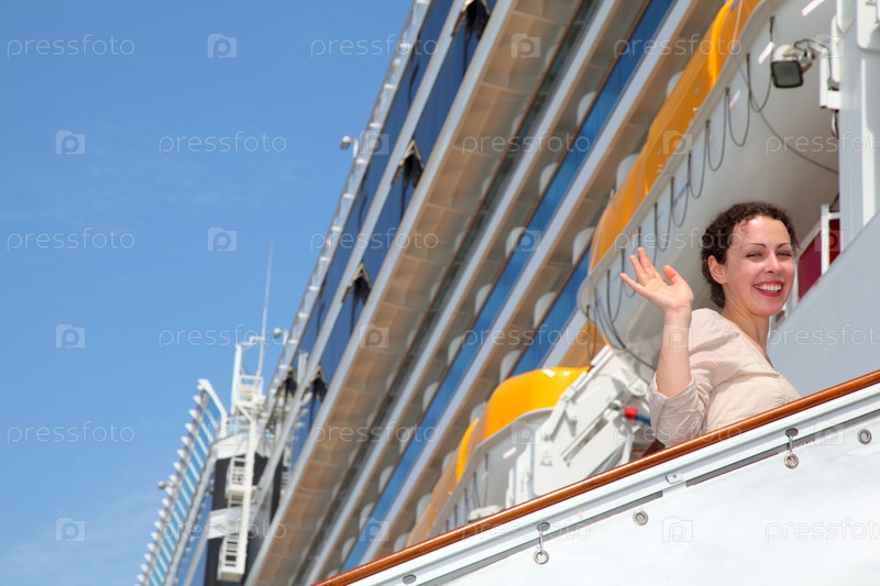 Женщина волнуется с балкона круизного лайнера