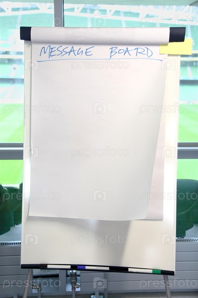 Белая доска с голубым рукописным текстом: "MESSAGE BOARD"