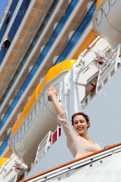 Женщина волнуется с балкона круизного лайнера