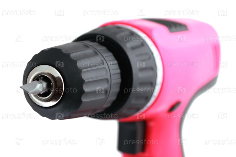 Близкий план отвертки с серебряным дрелем, черным кузовом и большим красным
