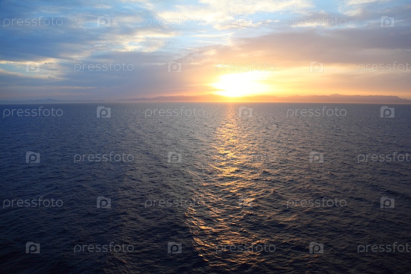 Солнце заходит над спокойными океаническими водами
