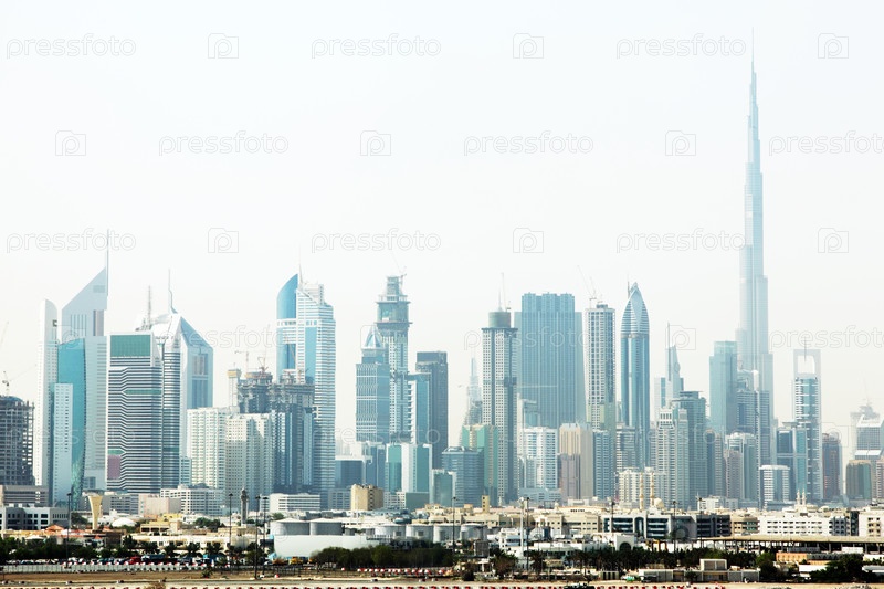 Горизонт представляет собой высокие небоскребы под туманным небом