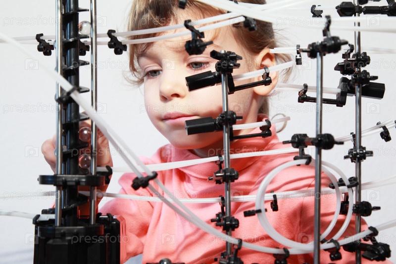 Маленькая девочка бросает мяч в спираль по развитию