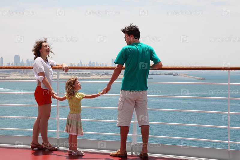 С дочерью, стоящей на палубе круизного лайнера и держащейся за семью