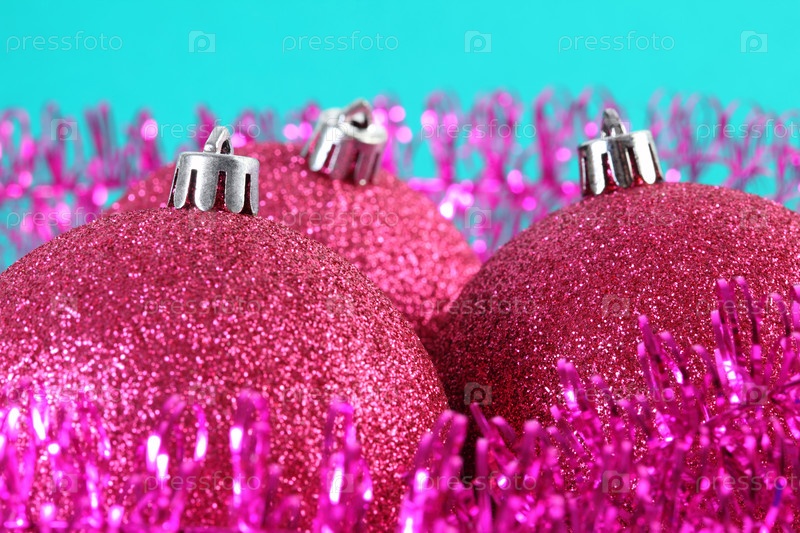 Верхняя часть трех красных шаров на рождественской елке, окруженные фиолетовым брезентом