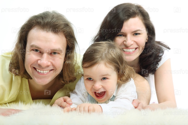 Счастливая молодая семья - мать, отец и игривая дочка - это