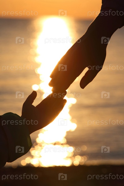 Силуэты двух рук ребенка и взрослого мужчины рядом с пальцами