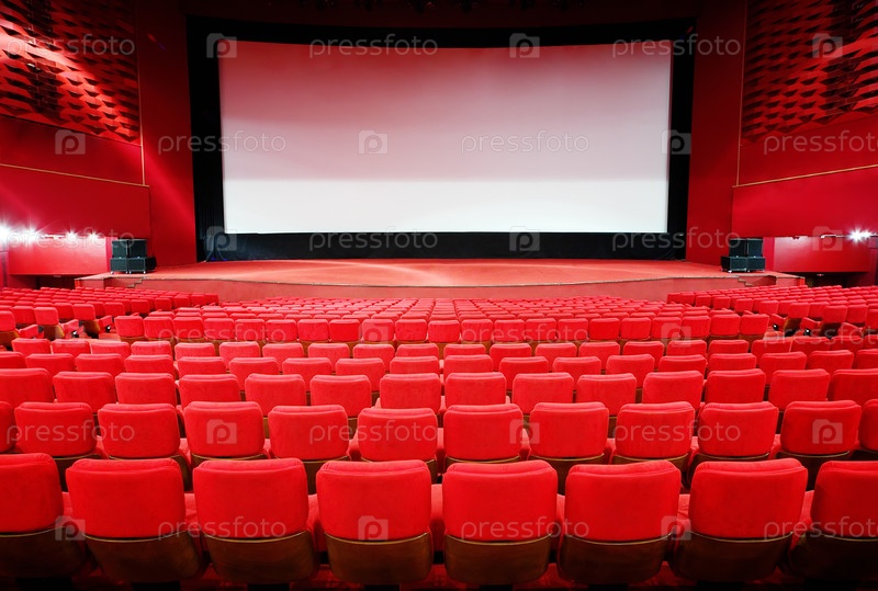 Просмотр на экране через ряды удобных красных стульев в illuminate