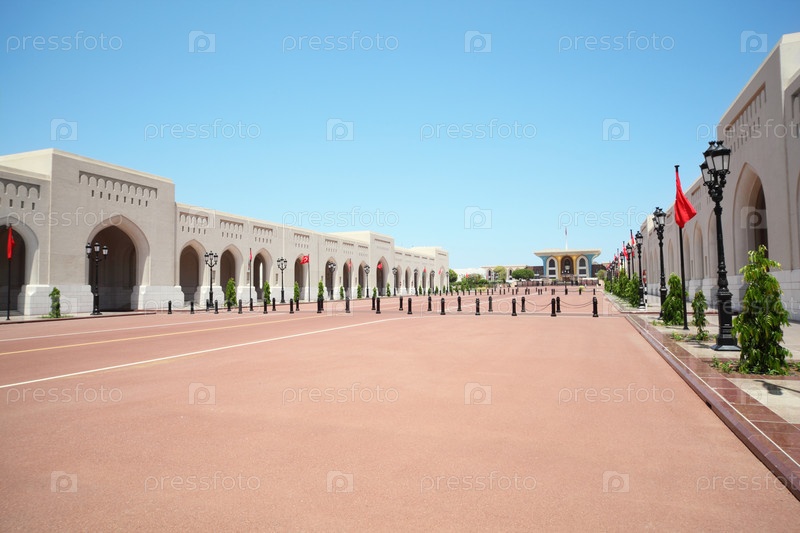 СУЛТАНСКИЙ ДОМ В Омане - 14 апреля: Турецкий и оманский флаги на главной