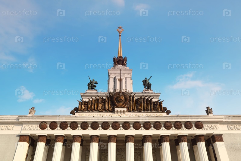 МОСКВА - 15 МАЯ: верх главного выставочного зала с республикой СССР