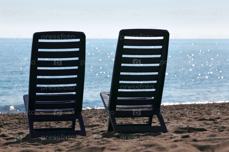 Два темных кресла с видом на тихие воды океана