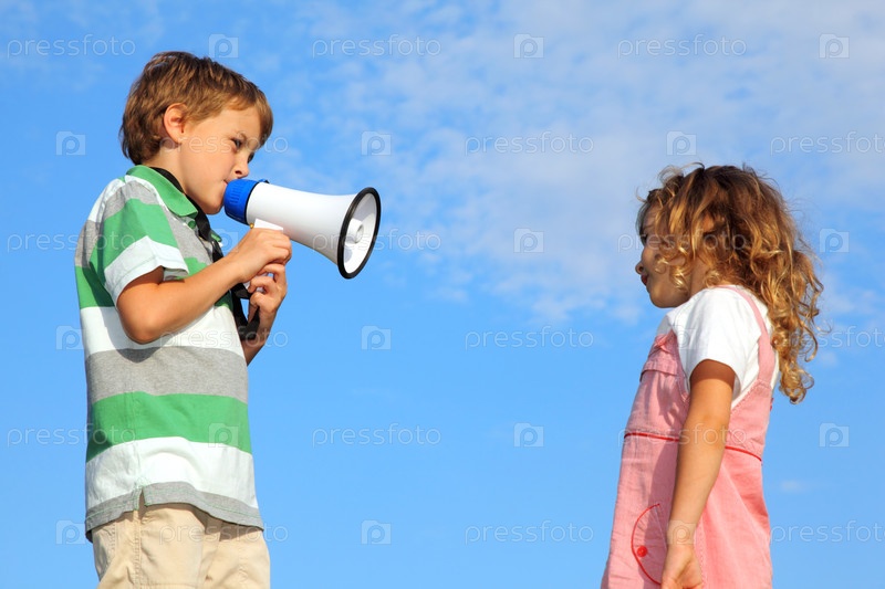 Маленький мальчик, на природе, обличает девочку через