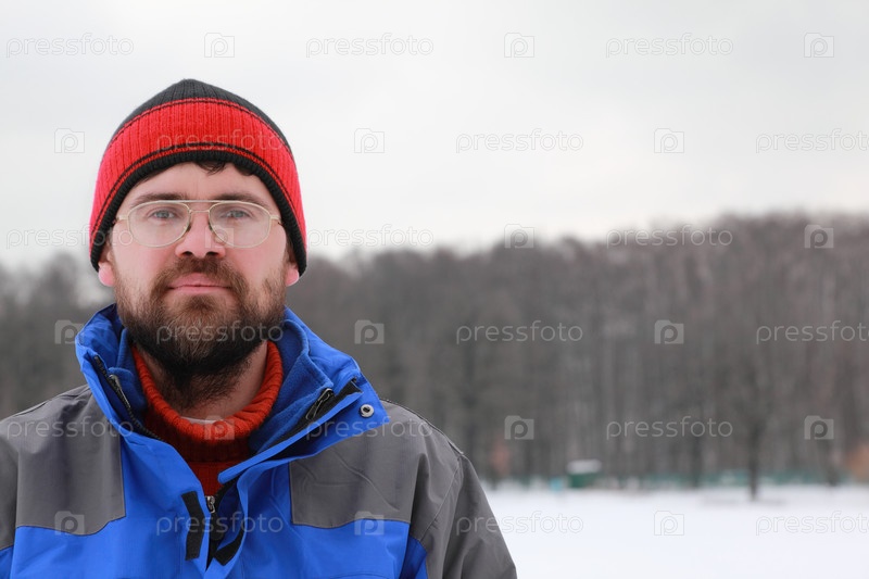 Мужчина стоит в снежном пейзаже, одетый в зимнюю экипировку