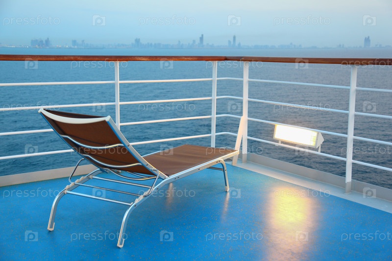 Пустой салонный стул на палубе круизного лайнера в сумерках