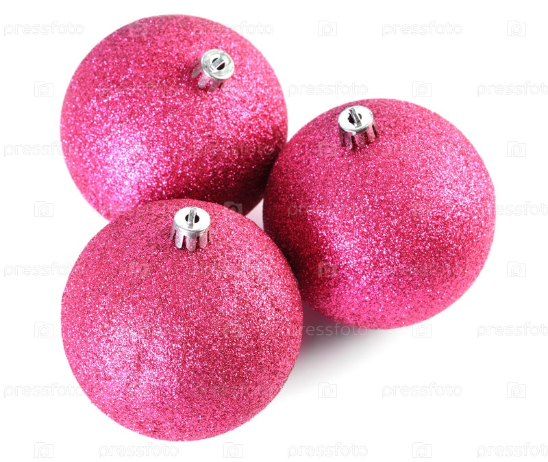 Вид сверху трех красных шаров на рождественской елке, изолированных от белого цвета
