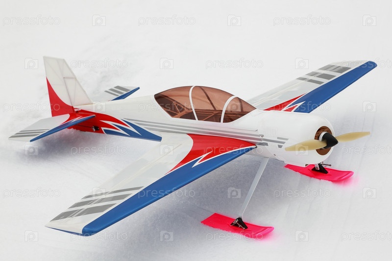 Красно-бело-синий самолет со лыжами