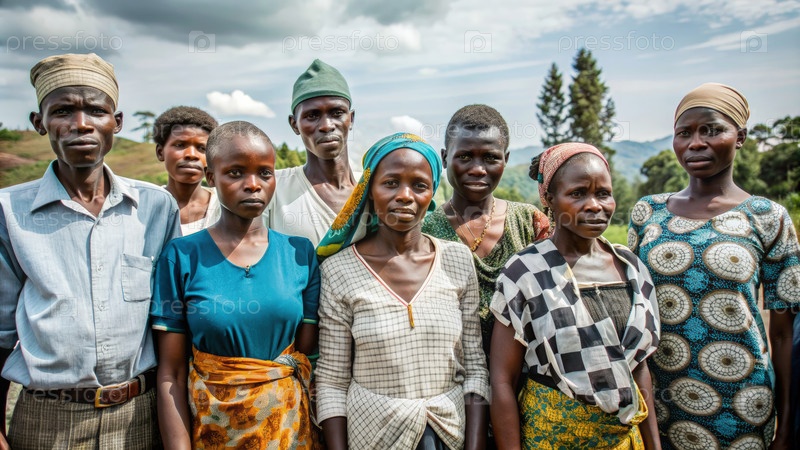 Группа тутси в сельской части Руанды позирует для фотографии