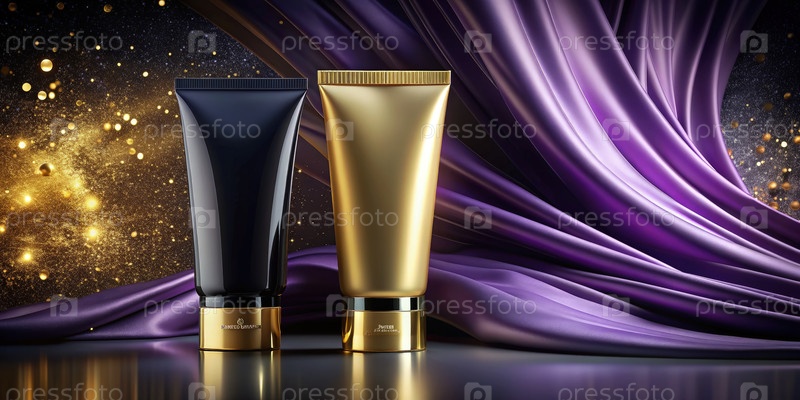 Элегантное отображение двух лосьонов для тела на фоне роскошного драпированного фона в мягком освещении