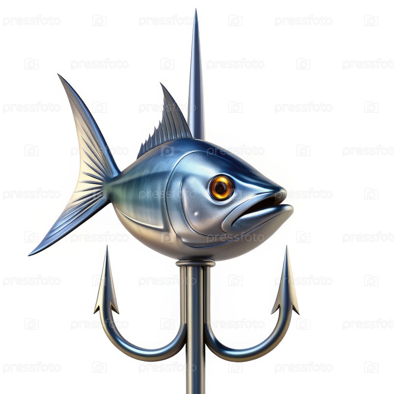Голова металлической рыбки-гарпуна изолирована на белом фоне