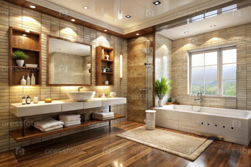 Дизайн ванной комнаты с натуральными элементами и достаточным освещением в жилом пространстве