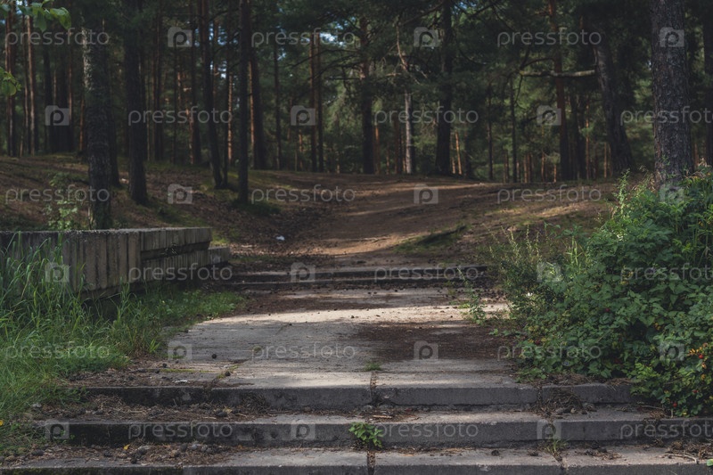 Бетонные ступени, ведущие в лесную тропу
