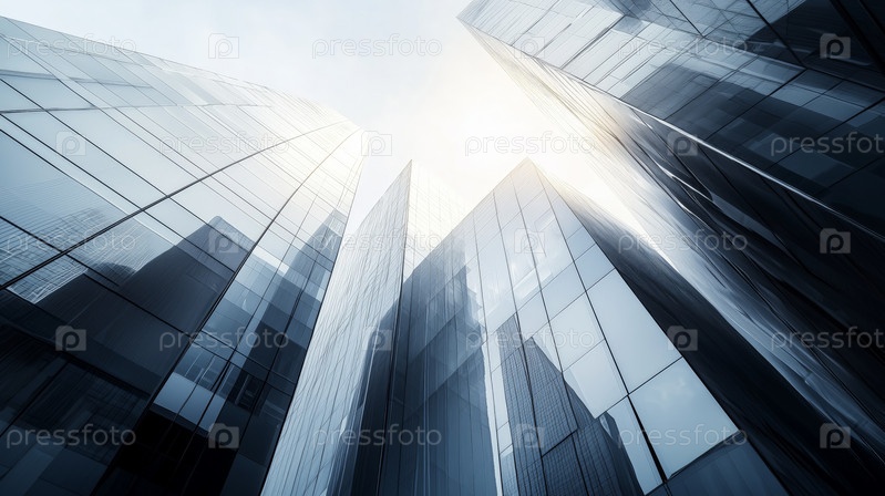 Футуристический стеклянный городской пейзаж с отражающими зданиями