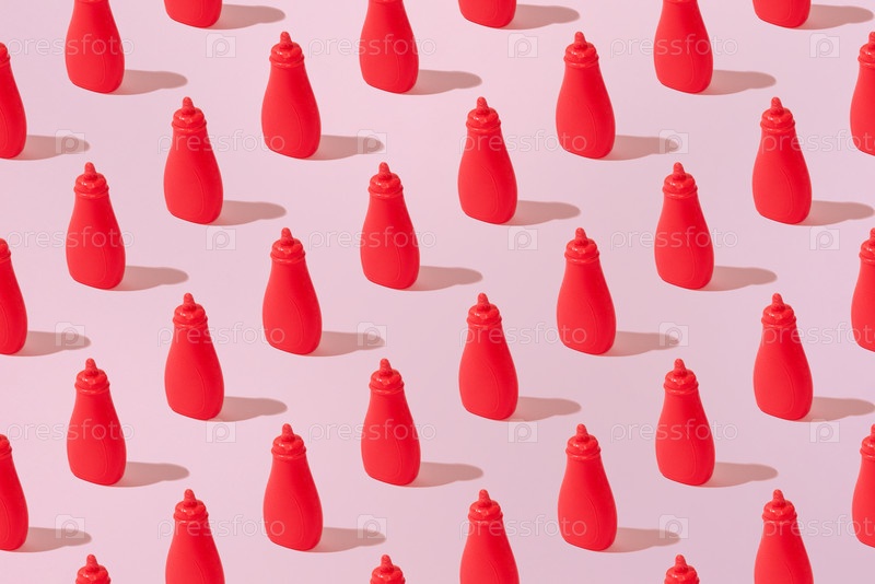 Творческий томатный кетчуп барбекю соус абстрактный рисунок плоский укладка на пастельном розовом фоне минимализм