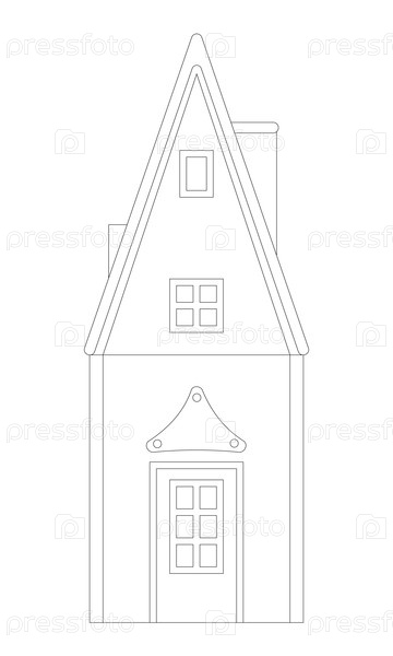 Растеризованная копия красочная страница средневековый дом изолированный на белом фоне, вырезка готова