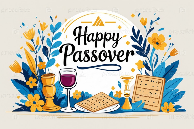 AI Generative Greeting Card for Традиционная религия Иудаизм Еврейский праздник Пасха Песах в Израиле