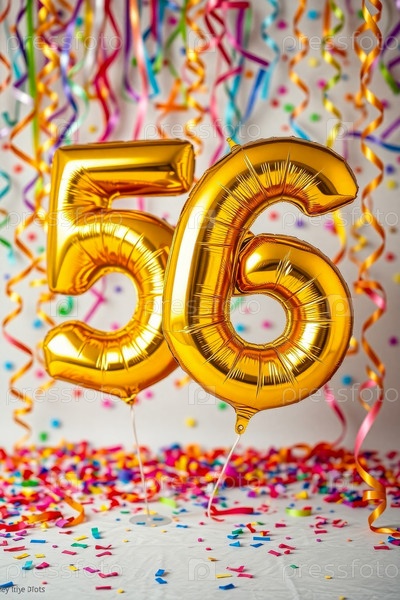 Гелий день рождения воздушный шар формы номер пятьдесят шесть, золотые буквы фигура 56 праздник праздничный фон декор