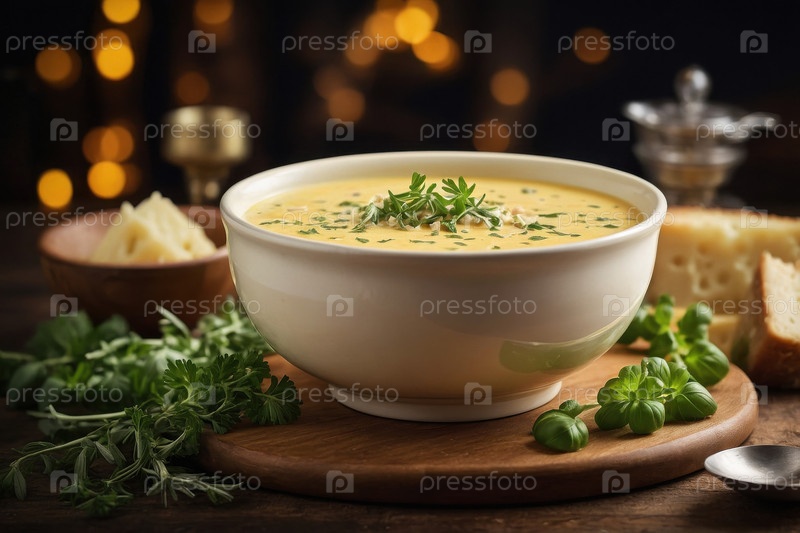 Традиционный органический сырный суп в миске ужин обед, овощи вегетарианская кухня AI Generative