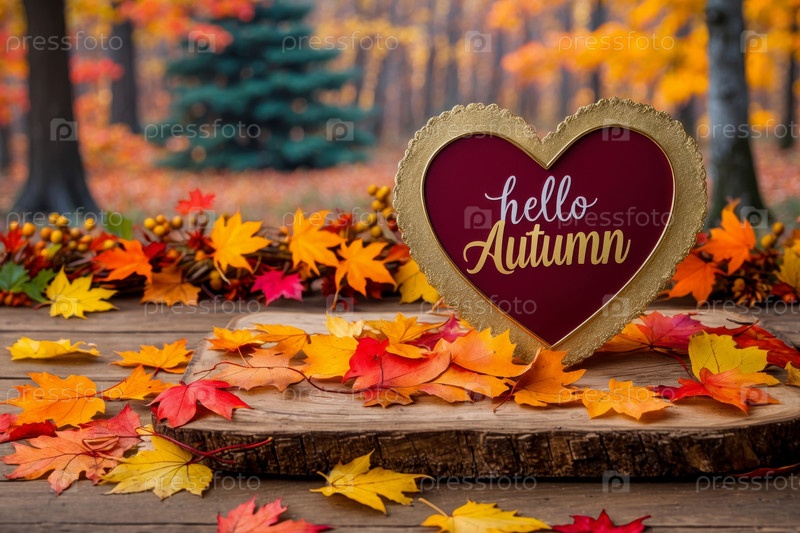 AI Generative Поздравление с надписью Привет, осень-осень на фоне желтых и красных листьев