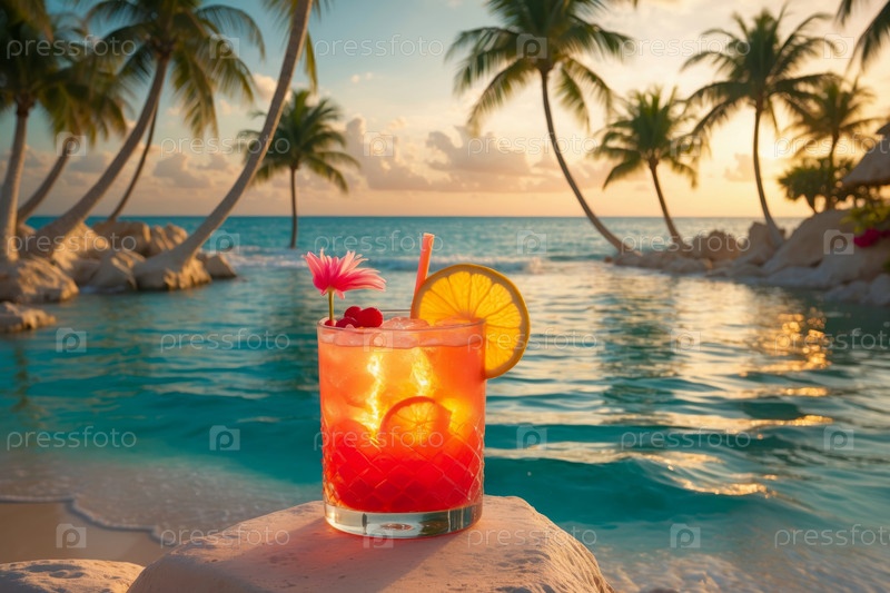 AI Generative Алкогольный коктейль на фоне бассейна, летний напиток фрукты в отпуске sea ocean