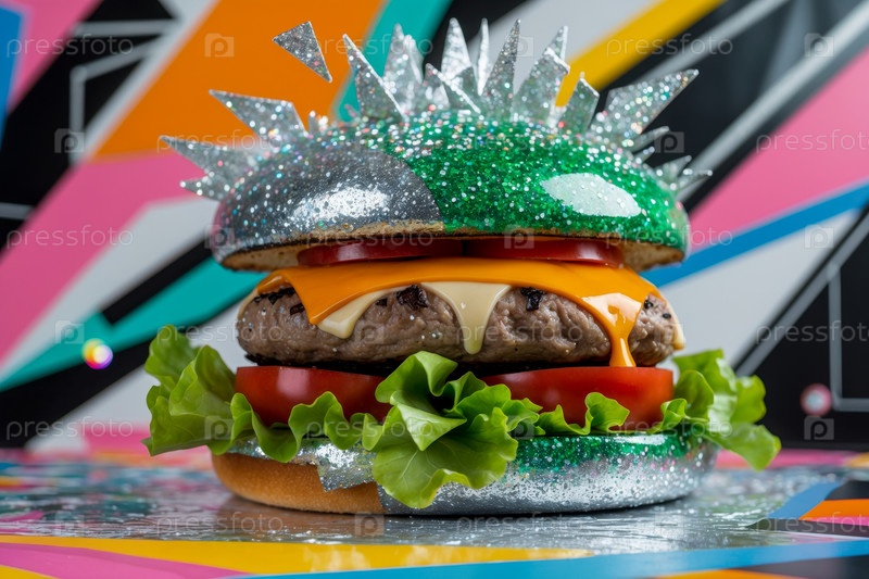 Abstract необычное творческое художественное украшение бургер поток вниз сыр соус пищевая фантазия ИИ генеративный
