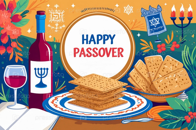 AI Generative Greeting Card for Традиционная религия Иудаизм Еврейский праздник Пасха Песах в Израиле