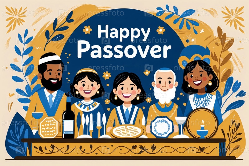 AI Generative Greeting Card for Традиционная религия Иудаизм Еврейский праздник Пасха Песах в Израиле