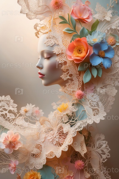 Фантастический портрет молодой женщины магическая модель на фоне золотых цветов из сказки AI Generative