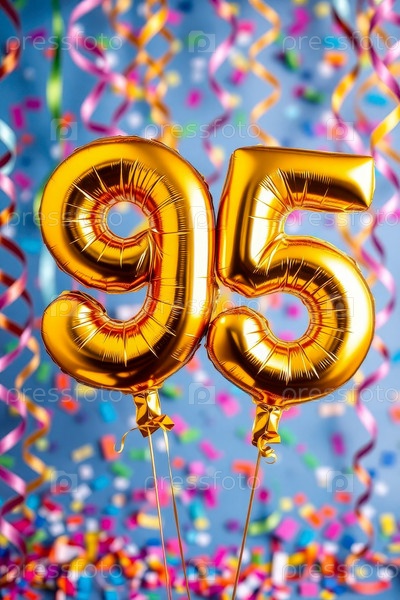 Гелий день рождения воздушный шар формы номер девяносто пять, золотые буквы фигура 95 праздник праздничный фон декор