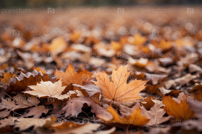 AI Generative Осенний атмосферный фон с желтыми и красными листьями, лист лежит на земле в лесном парке