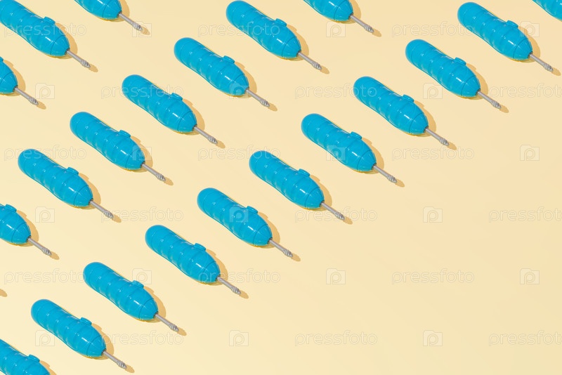 Креативная абстракция синий шаблон инструмента отвертки плоский лежит на желтом фоне