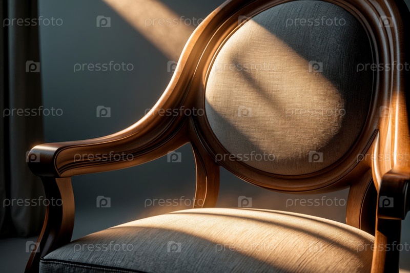 AI генеративный модный уютный деревянный текстильный стул в гостиной, элементы интерьера мебель