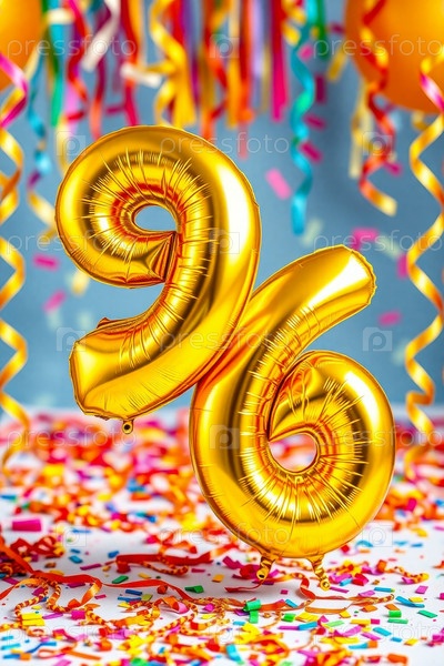 Гелий день рождения воздушный шар формы номер девяносто шесть, золотые буквы фигура 96 праздник праздничный фон декор