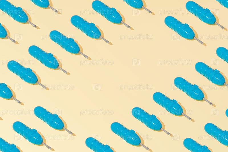 Креативная абстракция синий шаблон инструмента отвертки плоский лежит на желтом фоне