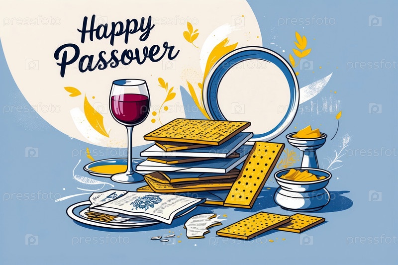 AI Generative Greeting Card for Традиционная религия Иудаизм Еврейский праздник Пасха Песах в Израиле