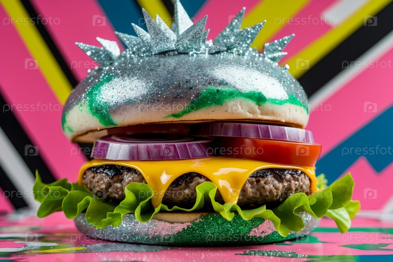 Abstract необычное творческое художественное украшение бургер поток вниз сыр соус пищевая фантазия ИИ генеративный