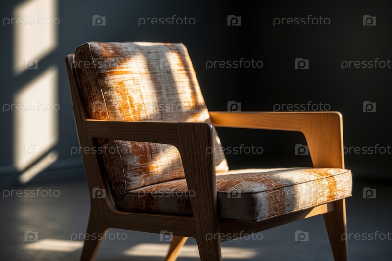 Модное уютное деревянное текстильное кресло в гостиной, элементы интерьера Мебель AI Generative