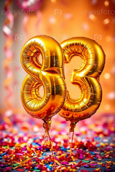 Гелиевый баллон на день рождения номер восемьдесят три, фигура золотых букв 83 праздник праздничный фон