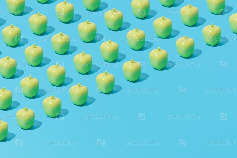 Творческий абстрактный летний яблочный рисунок плоский лежит на пастельно-синем фоне минимализм с копировальным пространством