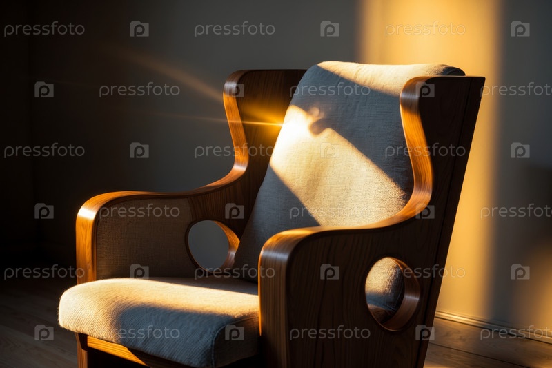 Модное уютное деревянное текстильное кресло в гостиной, элементы интерьера Мебель AI Generative
