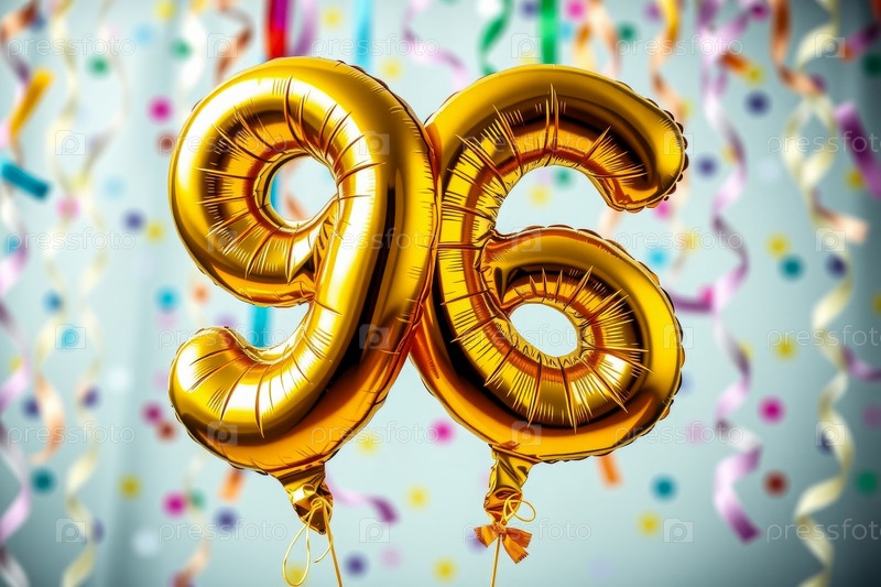 Гелий день рождения воздушный шар формы номер девяносто шесть, золотые буквы фигура 96 праздник праздничный фон декор